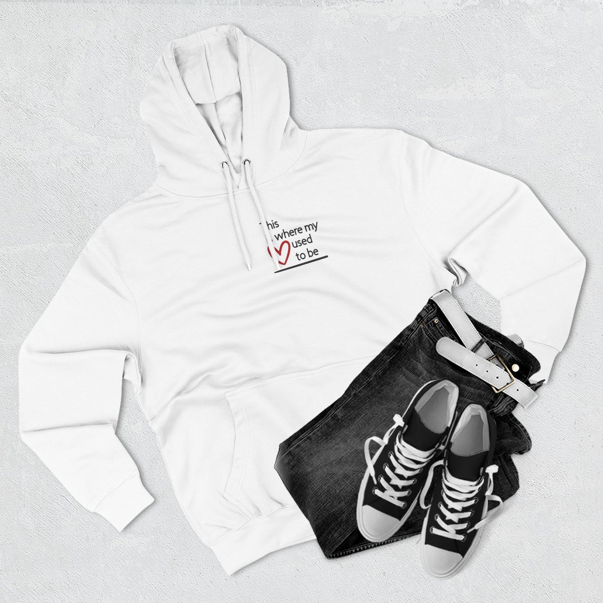This is Where my Heart used to be hoodie. Made with three-panel fleece lining, this pullover is double stitched for durability and roomy.