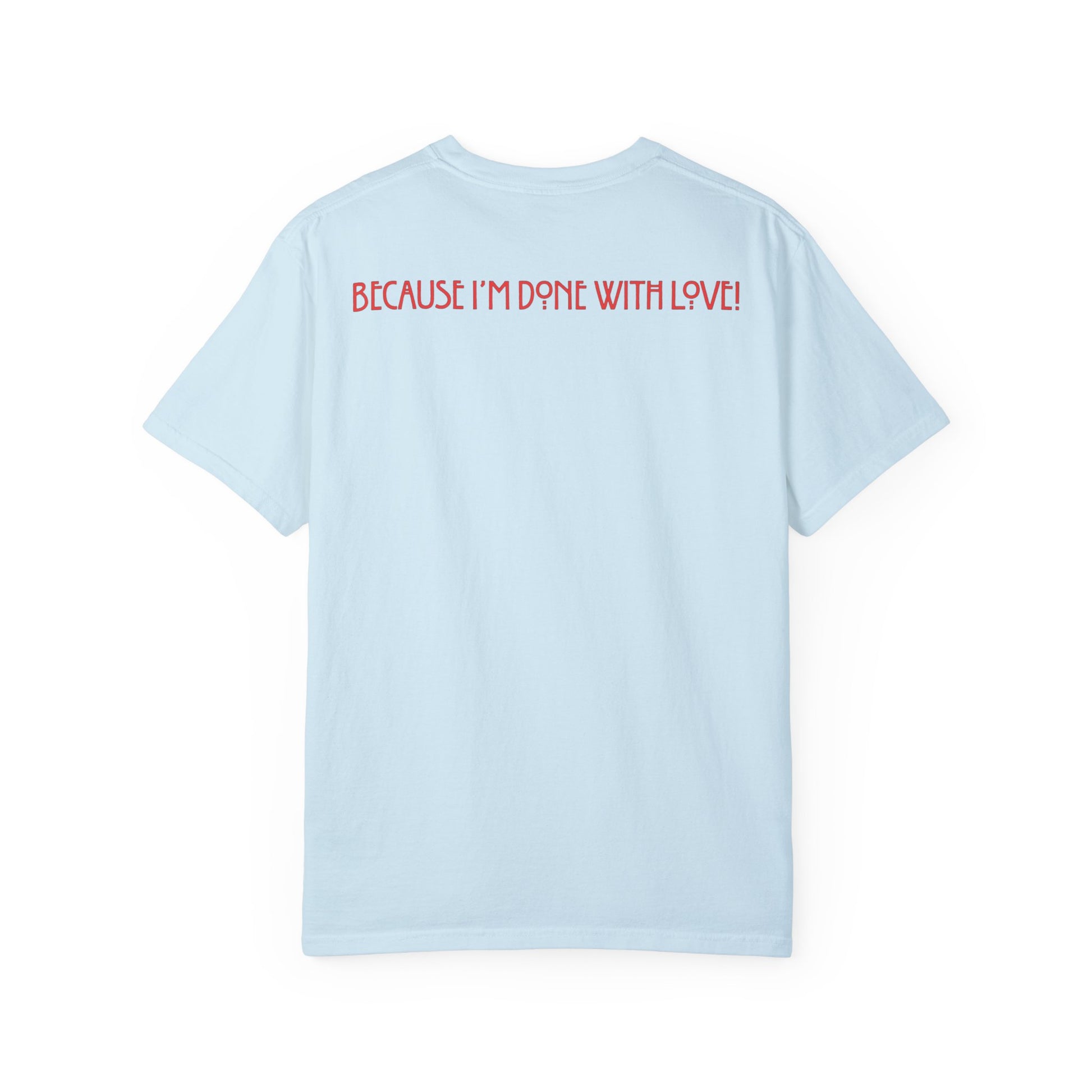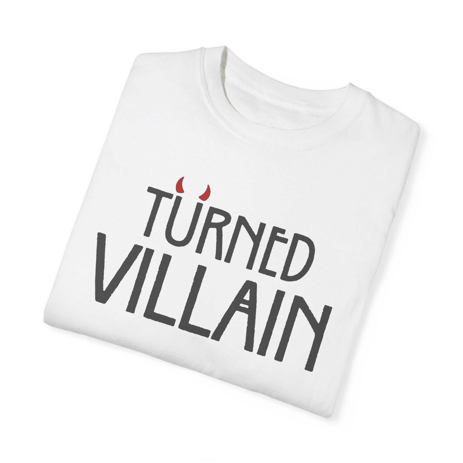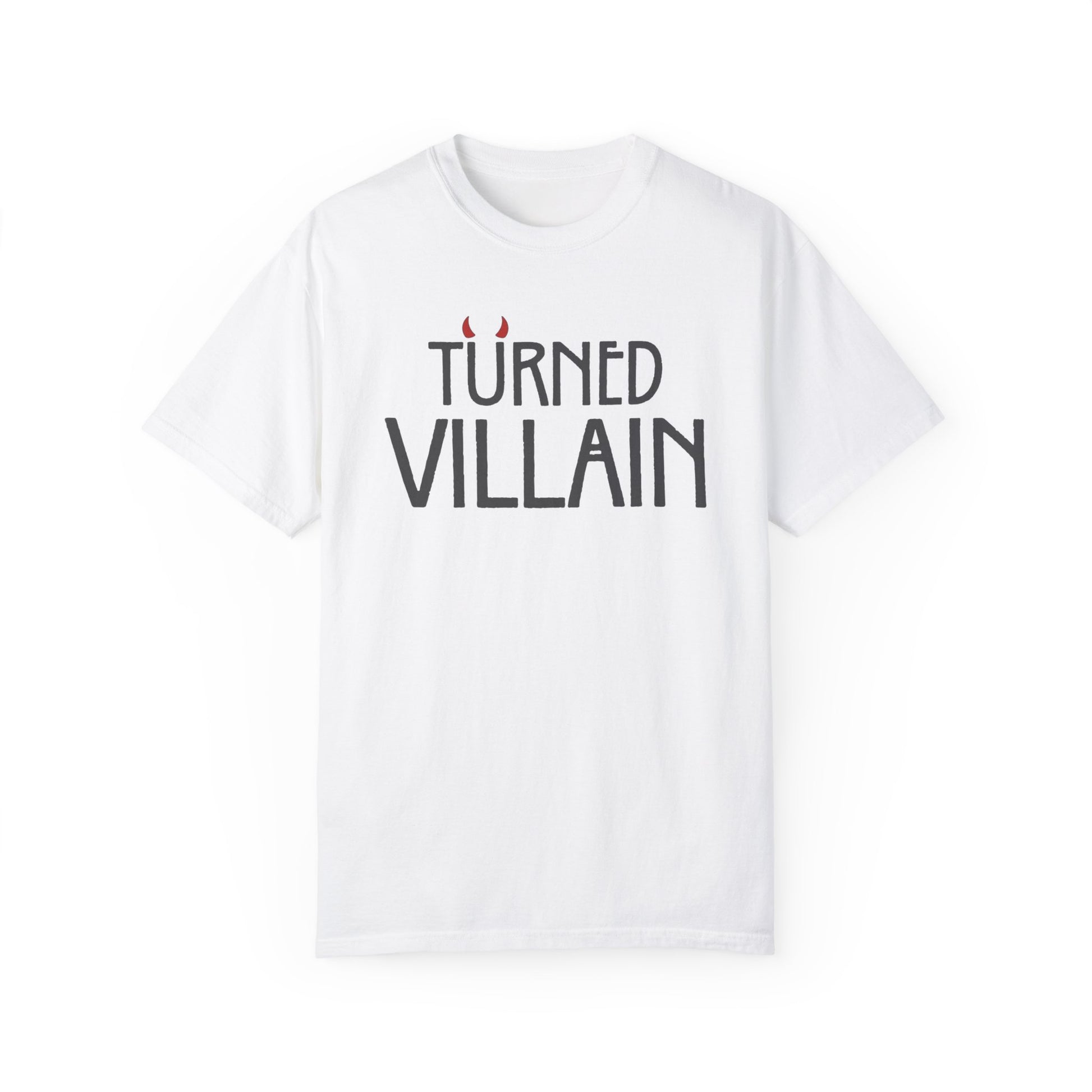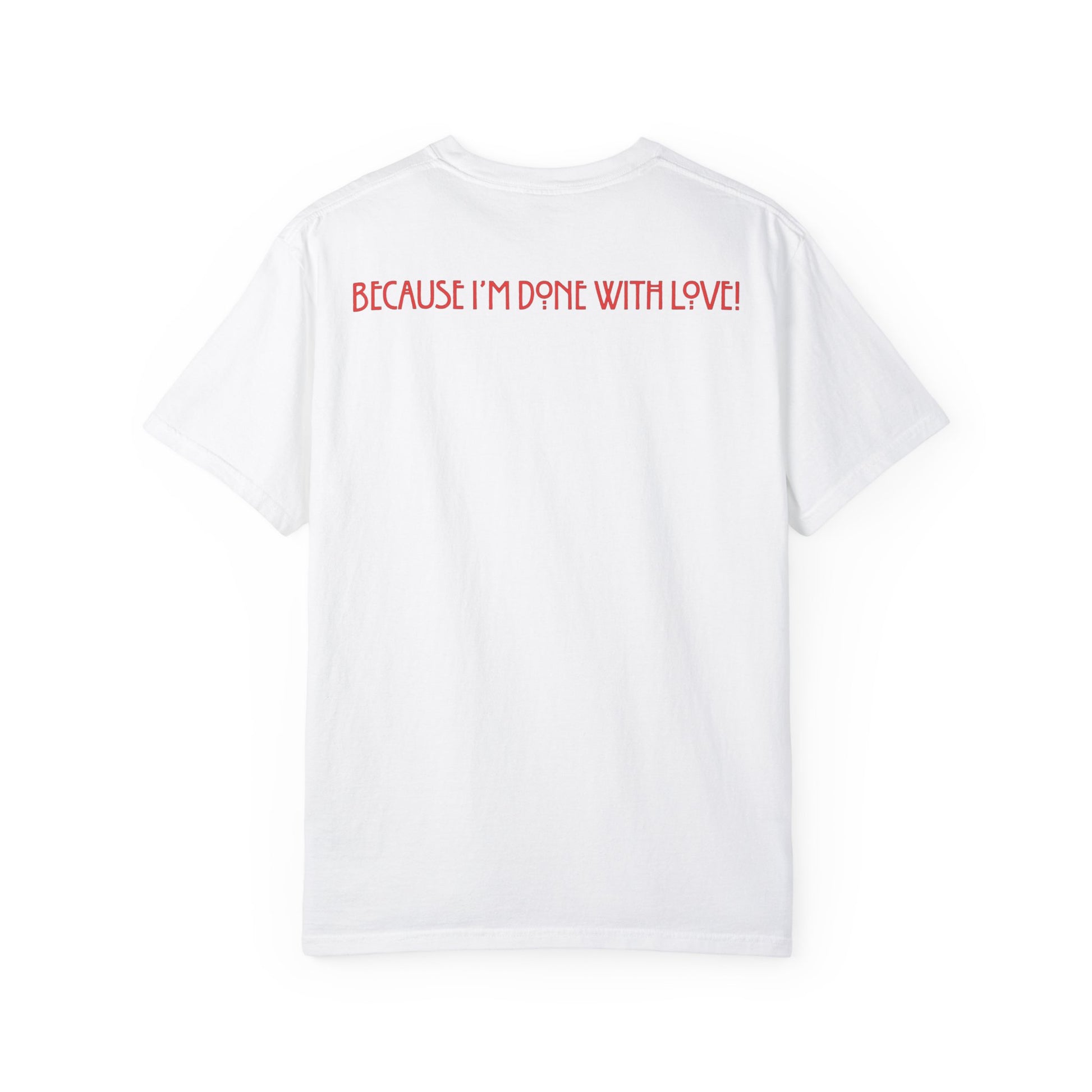 This tee features the Turned Villain logo on front and 'Because I'm Done With Love' on back. This design was born and created by a heartbreak. Sometimes we need to become somewhat of a villain to protect our fragile heart.